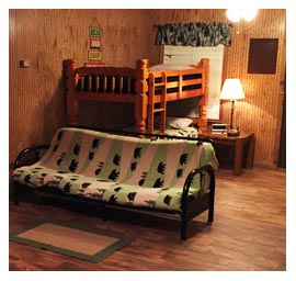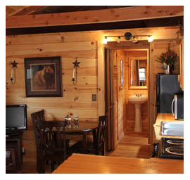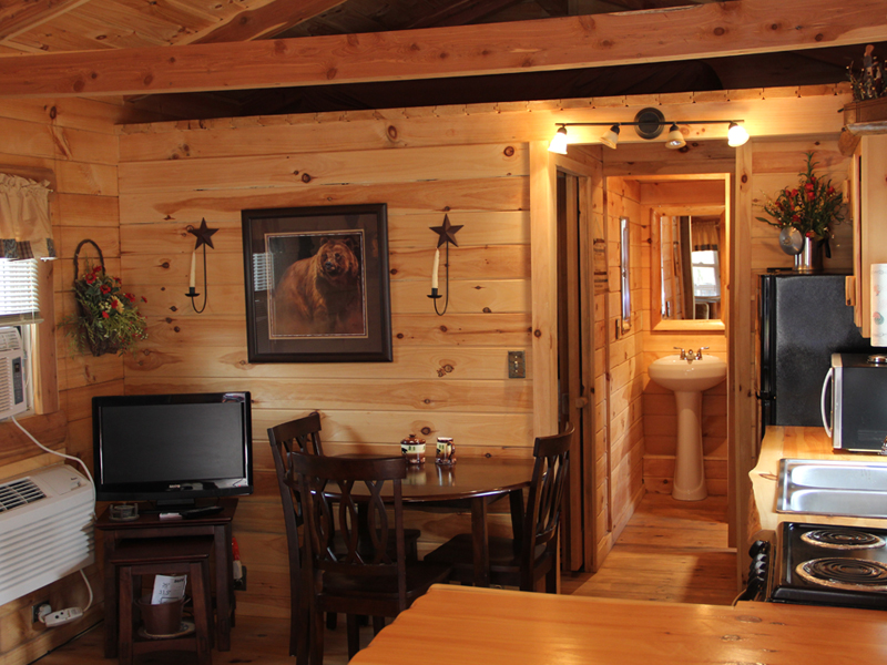 All Cabins are equipped with the following: Flat Screen TV with DVD player and cable, Fully equipped kitchen which includes, microwave, cookware, coffee pot, dishes, utensils, paper products, coffee & Coffee filters,